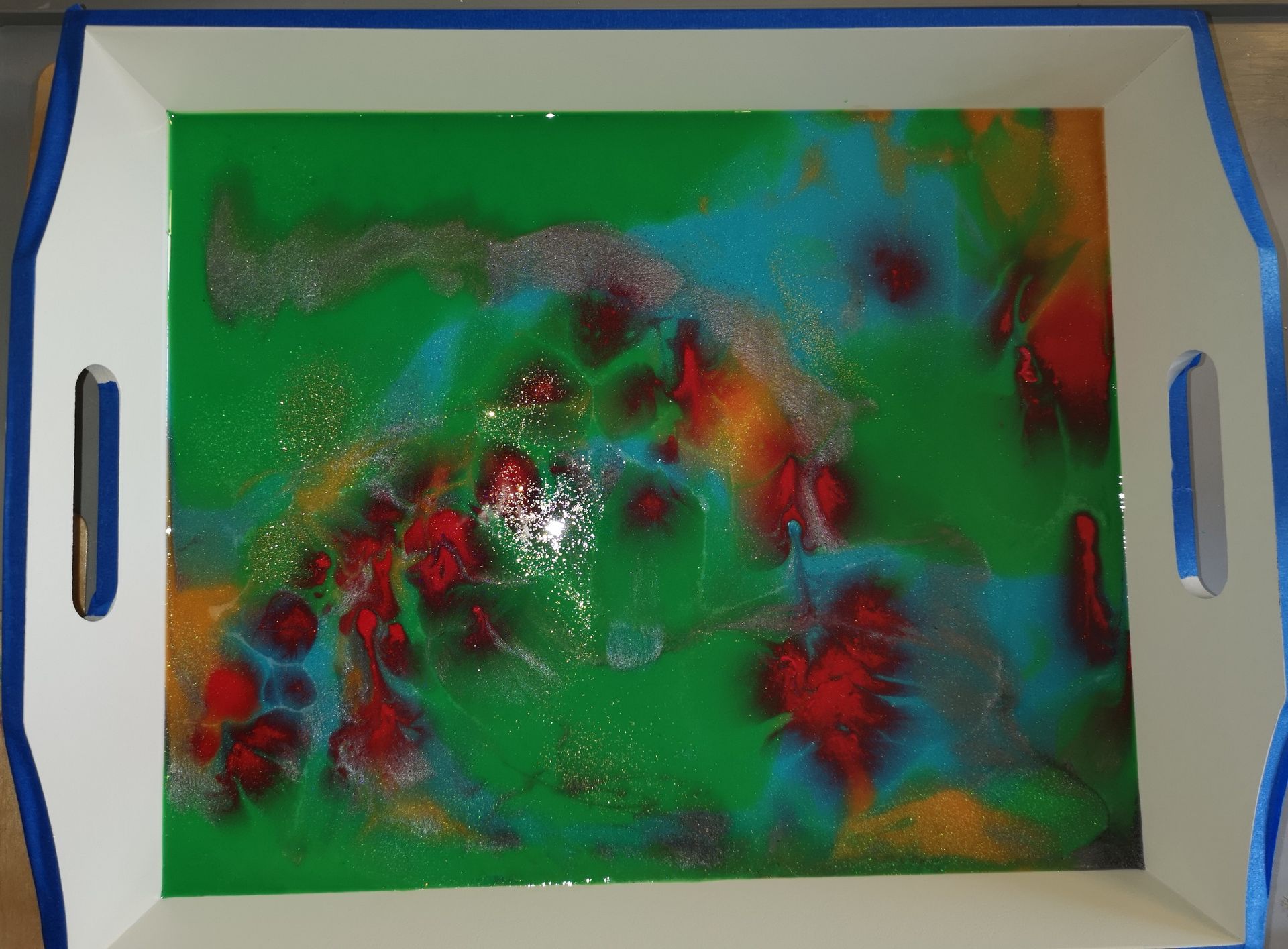 You will be coating the base of a medium size wooden tray.